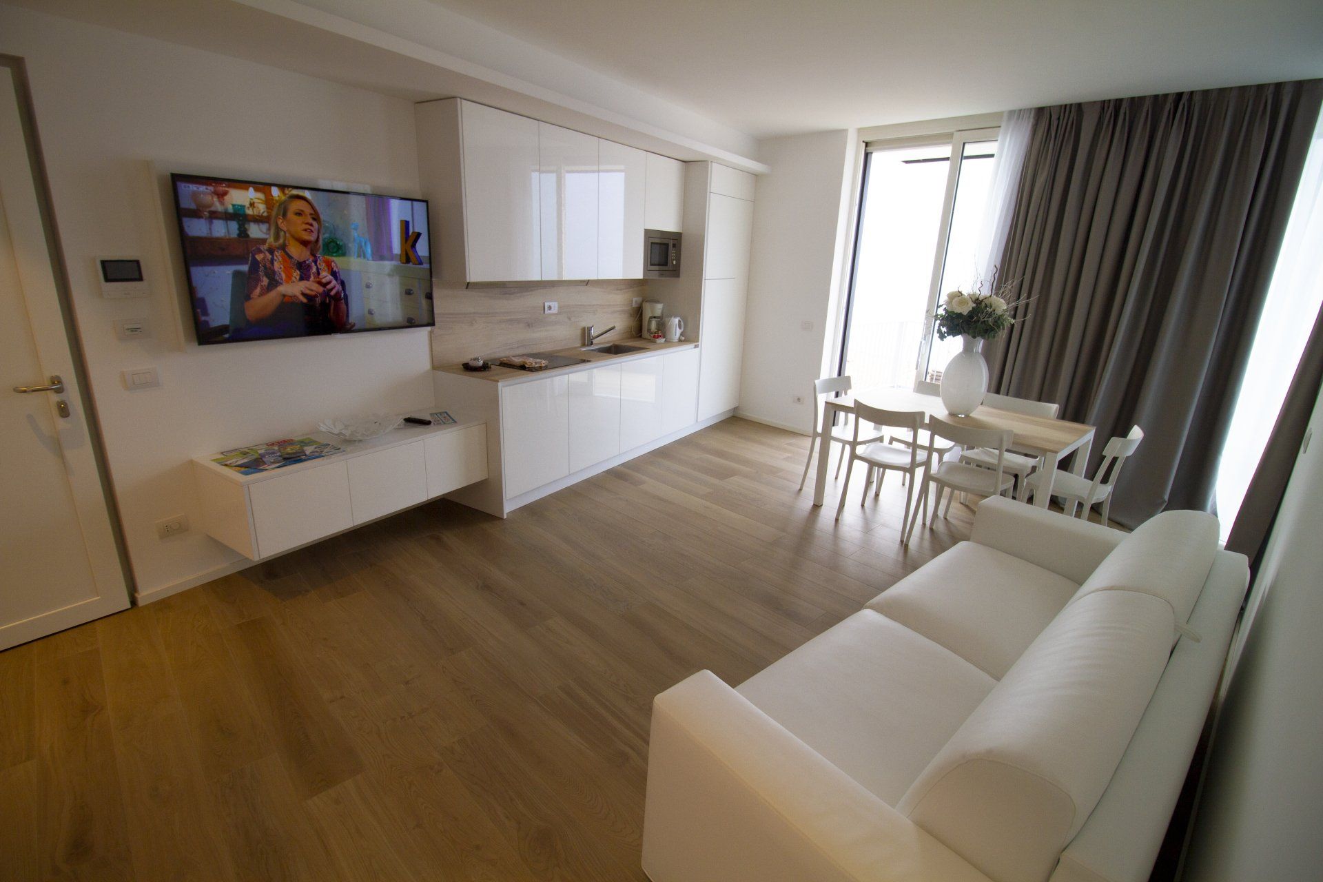 Elegante e luminoso appartamento con ampie vetrate che si affacciano su un terrazzo dove è possibile ammirare il lago da Nord a Sud. Ideale per quattro persone con la possibilità di ospitarne sei.